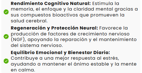 💚Protege y regenera las neuronasNo es un suplemento más: es el aliado natural que tu mente necesita para rendir mejor cada día, sentir más calma y mantener tu cerebro joven.